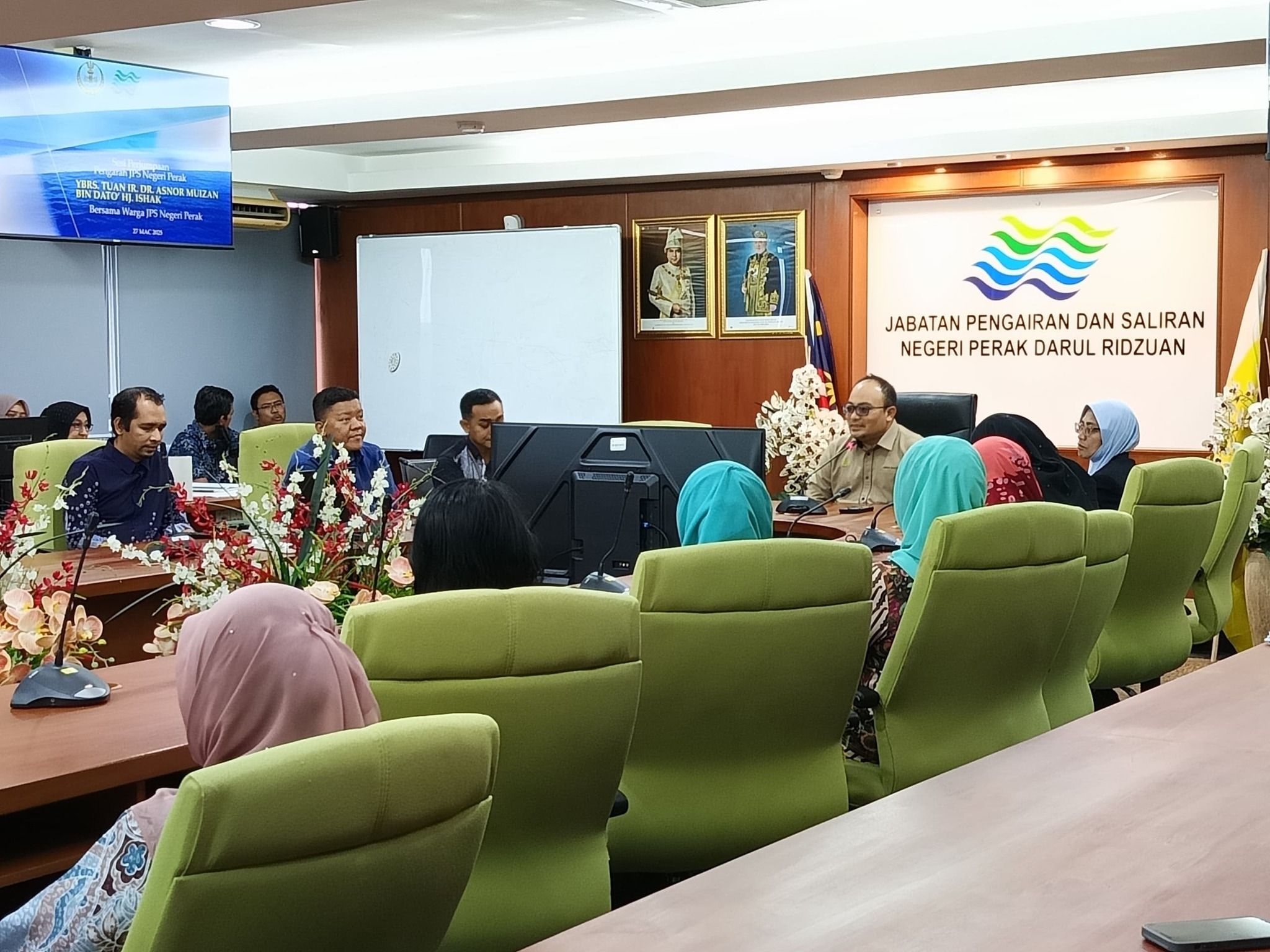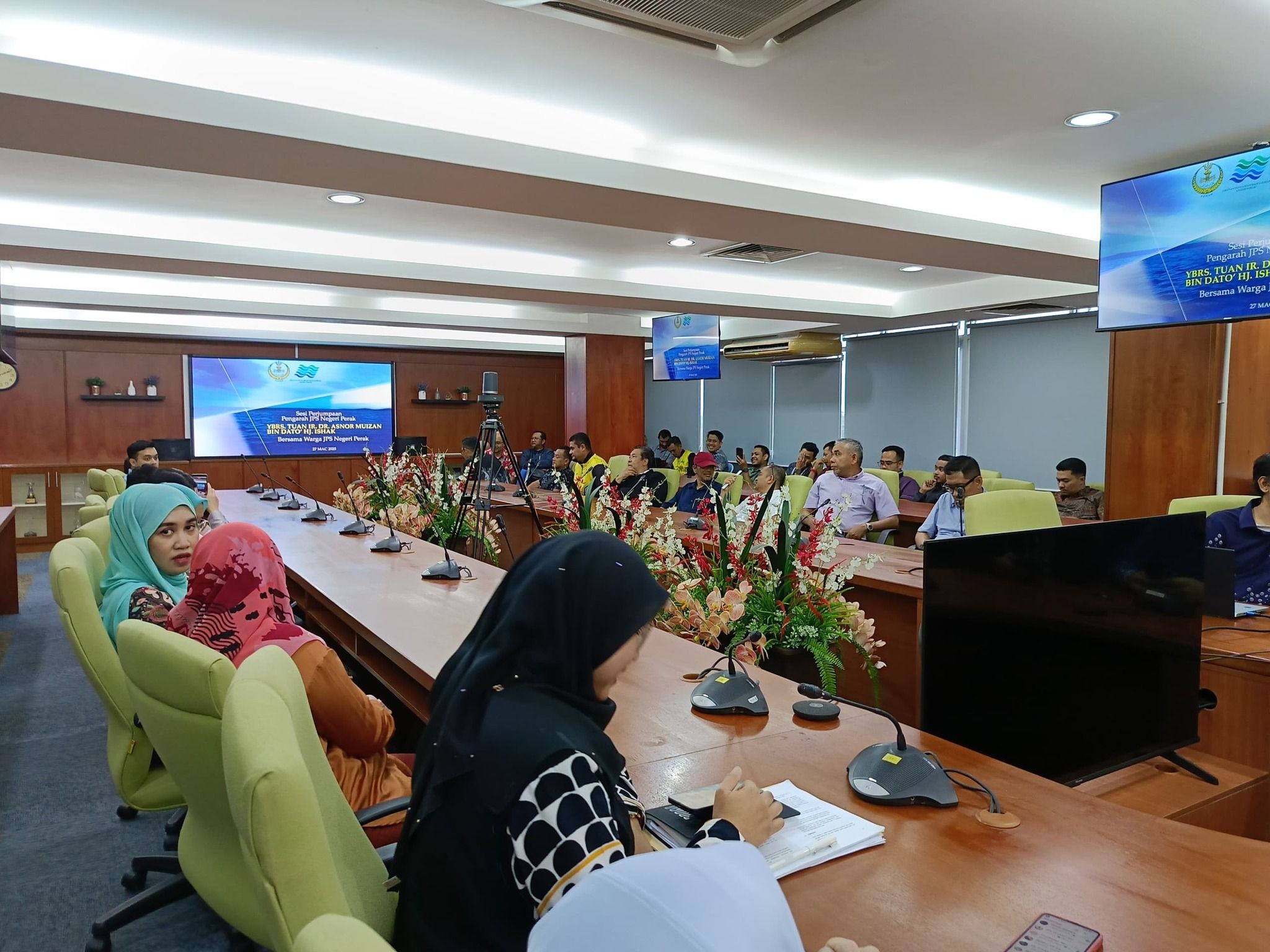 Sesi perjumpaan ini juga turut dihadiri oleh Timbalan Pengarah I, Puan Ir. Azizah bt Mohd Sabri, Timbalan Pengarah II, Puan Zamzamzurina bt Zainun serta Ketua-Ketua Bahagian JPS Negeri Perak.