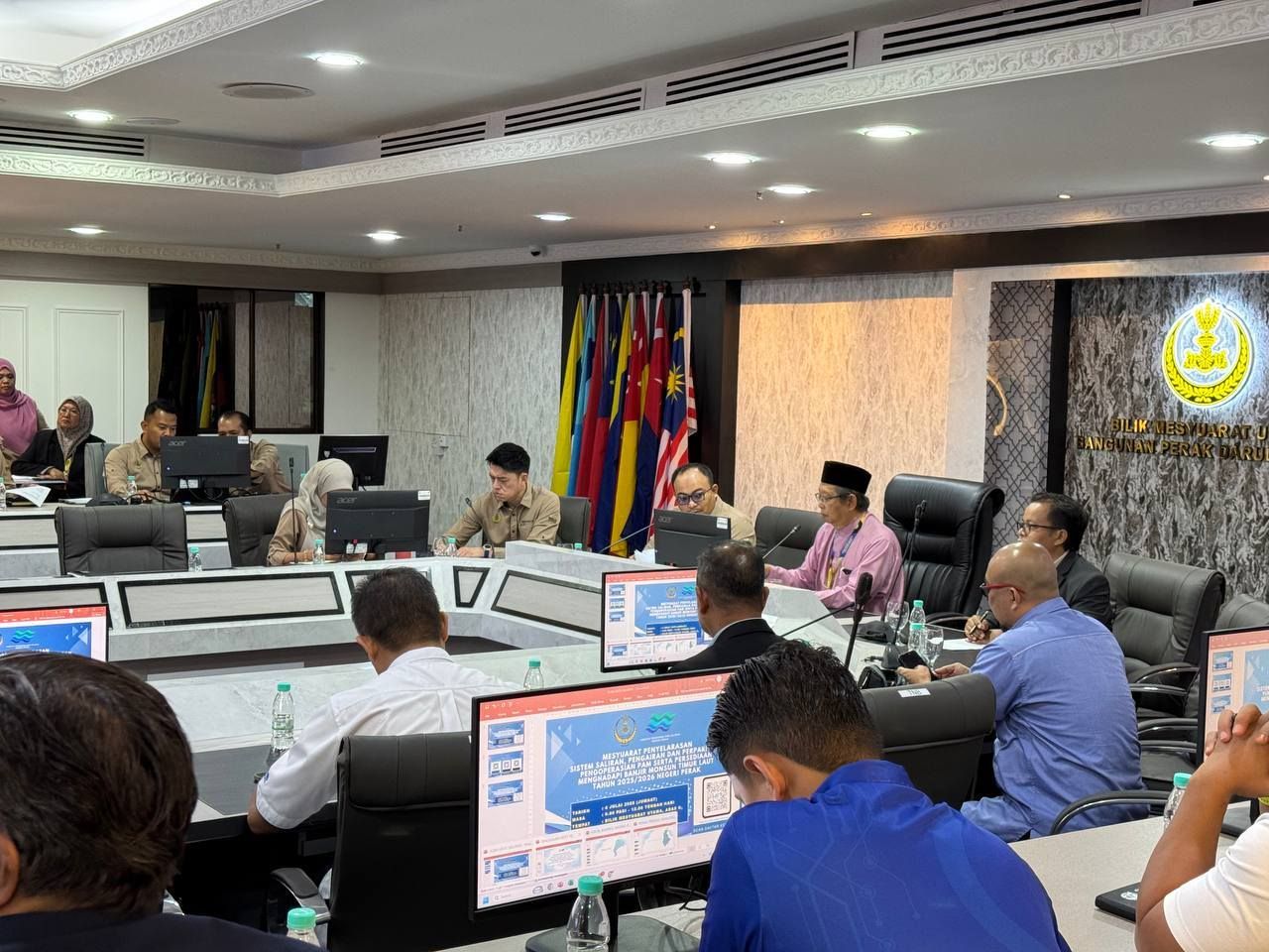 04 Julai 2025, Ipoh - Satu sesi Mesyuarat Penyelarasan Berkenaan Sistem Saliran, Pengairan dan Perparitan, Pengoperasian Pam serta Persediaan Menghadapi Banjir Monsun Timur Laut Tahun 2025/2026 Negeri Perak telah dipengerusikan oleh YB Dato' Seri Ir Haji Mohamad Nizar bin Jamaluddin, Pengerusi Jawatankuasa Infrastruktur, Tenaga, Air dan Pengangkutan Awam telah diadakan di Bilik Mesyuarat Utama, SUK Negeri Perak.
