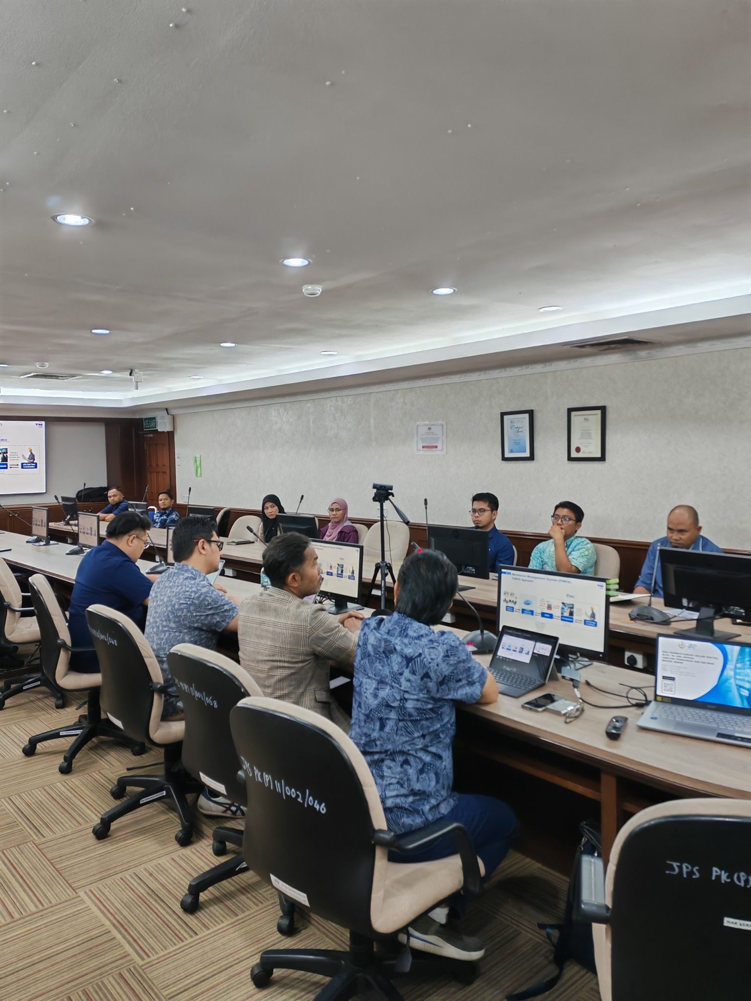 Sesi pembentangan ini telah dipengerusikan oleh Encik Mohd Hafiz bin Ahmad, PPK Bahagian Sumber Air, Hidrologi dan Empangan dan turut dihadiri oleh Encik Ir. Mohd Shamimi bin Mohd Tahir, PPK Korporat ; Puan Siti Sarah bin Mohd Rasid, PPK Bahagian Khidmat Pengurusan ; Encik Ts. Meor Shakireen bin Mat Amin, PP Pengairan dan Saliran Pertanian serta turut dihadiri oleh wakil Bahagian-Bahagian JPS Ibu Pejabat dan wakil dari JPS Daerah.