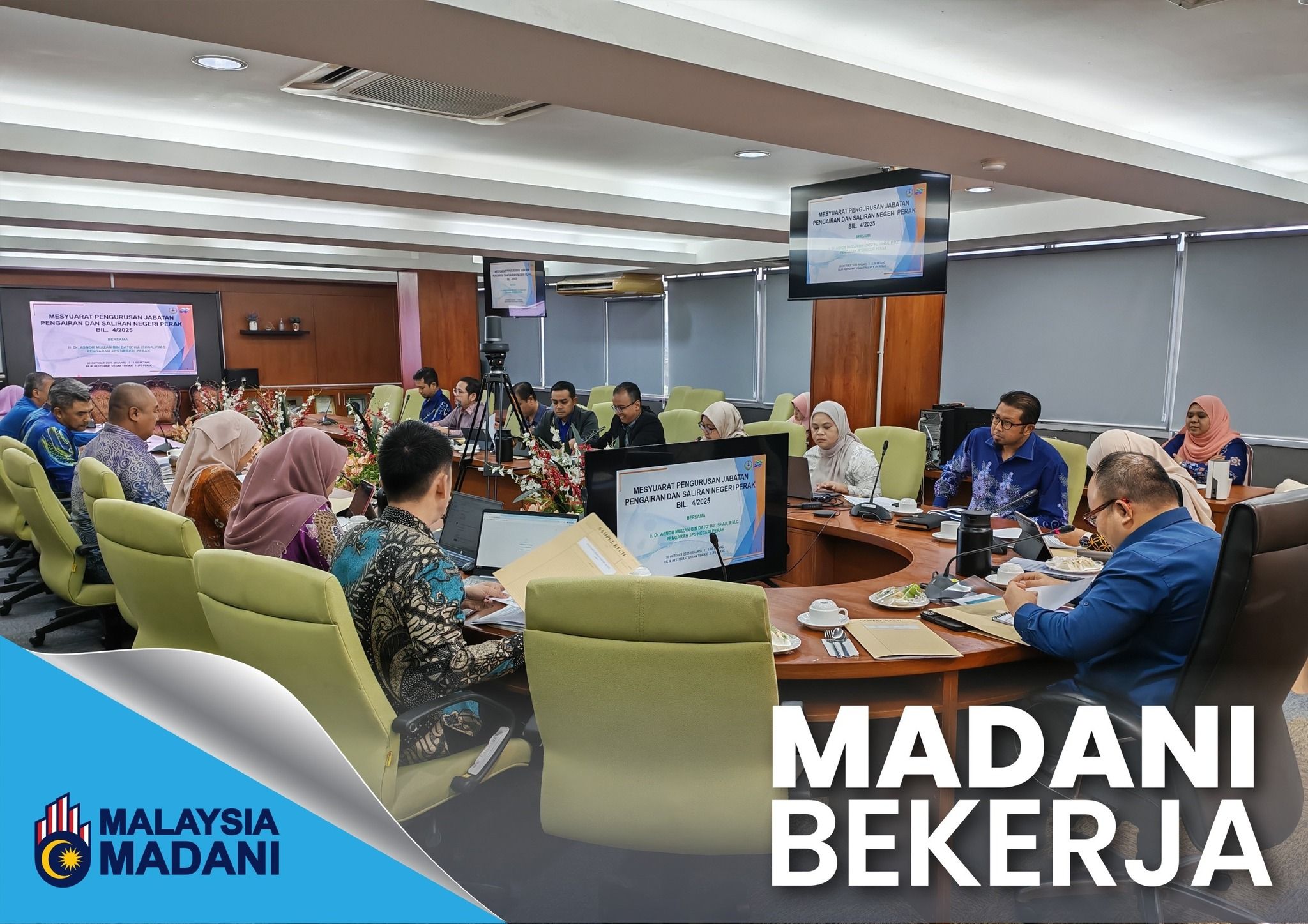 30 Oktober 2025, Ipoh – Mesyuarat Pengurusan Jabatan Pengairan dan Saliran (JPS) Negeri Perak Bilangan 4 Tahun 2025 telah berlangsung di Bilik Mesyuarat Utama, JPS Negeri Perak.