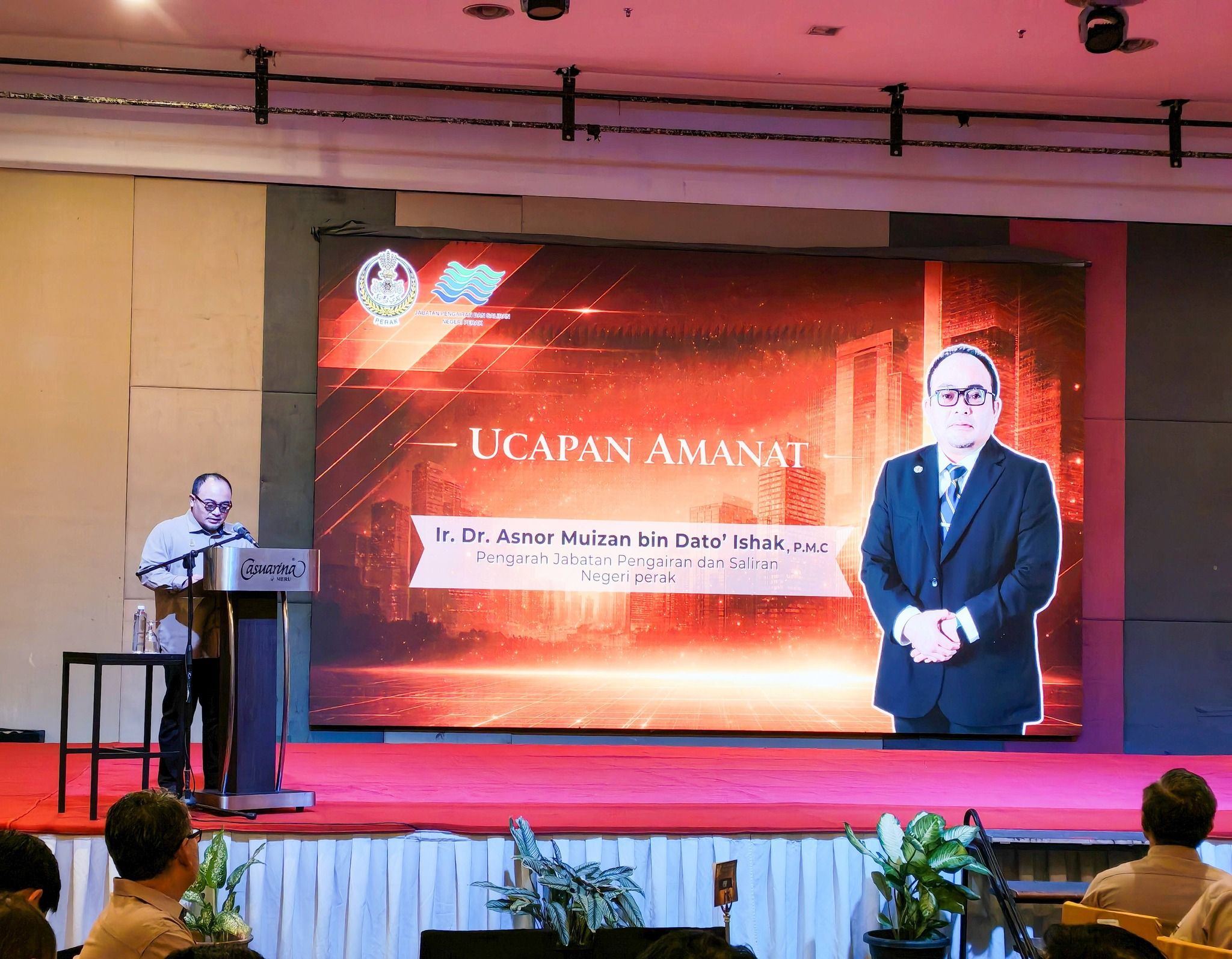 Majlis dimulakan dengan nyanyian lagu Negaraku dan lagu Negeri Perak, diikuti dengan tayangan montaj, sebelum diteruskan dengan amanat yang telah disampaikan oleh Pengarah JPS Negeri Perak, YBrs. Ir. Dr. Asnor Muizan bin Dato’ Haji Ishak.